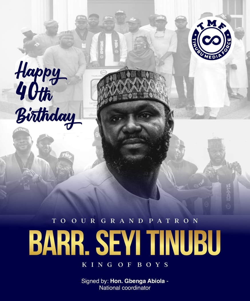 Happy Birthday once again, Our dear Grand Patron Barrister Seyi Tinubu, a leader with purpose, a man of peace, and a symbol of renewed hope for a greater Nigeria.