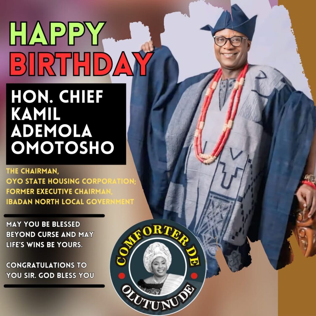 Hon. Chief Mrs. Olufunke Comforter Adeniyi-Olajide, the Member Representing Ibadan North Constituency 1, at the Oyo State House of Assembly has congratulated the quintessential and astutely brilliant Hon. Kamil Ademola Omotosho, the Oyo State Housing Corporation Chairman on the occasion of his birthday.