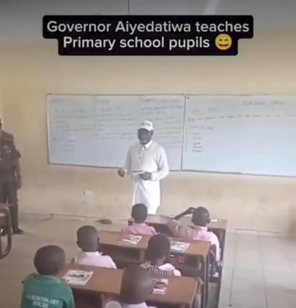 A heartwarming video that went viral on Friday shows Ondo State Governor, Lucky Aiyedatiwa, stepping into a classroom to teach,